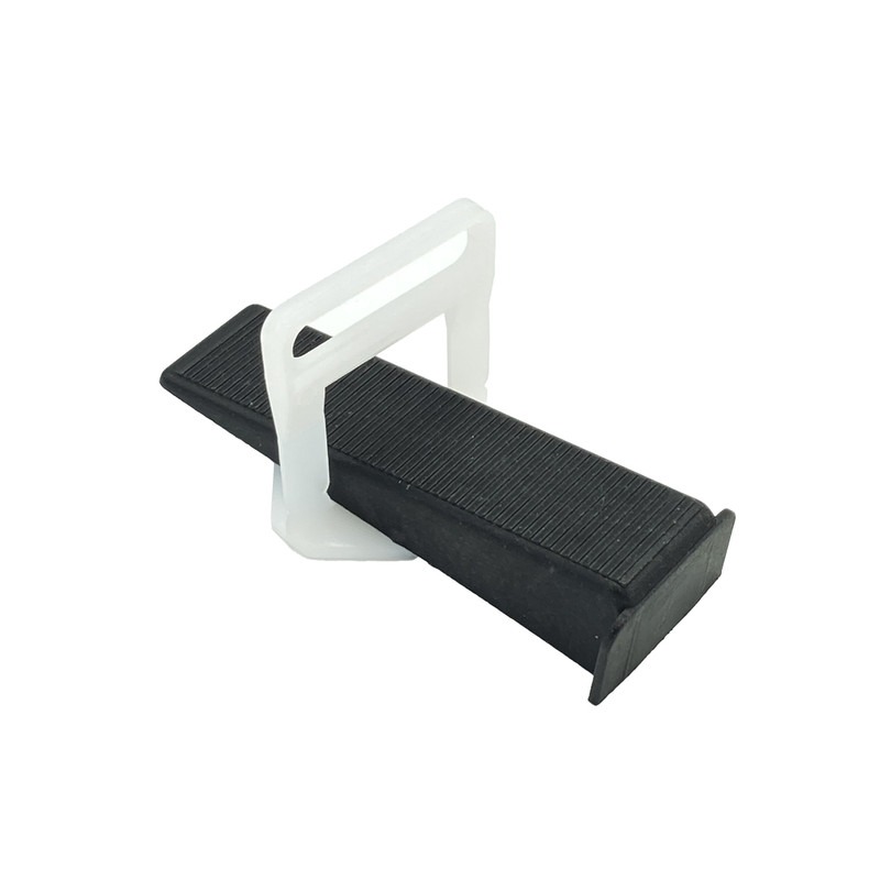 گوه همتراز کاشی در بسته بندی 100 عددی که رنگ آن مشکی ودارای دندانه قفل شونده است و طول آن 90 میلیمتر ، عرض آن 20 میلیمتر و ارتفاع بلندترین قسمت گوه همتراز 16 میلیمتر می باشد.